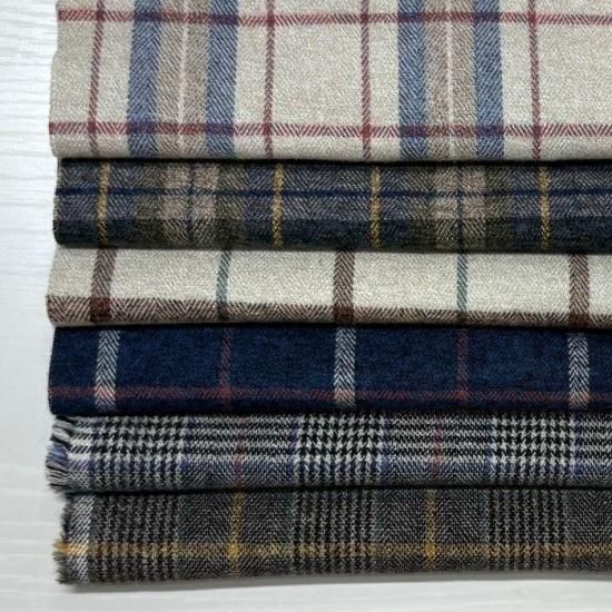 ナチュラルで味わいのある生地感が特徴で、チェックやツイード調の生地に多く使われます。